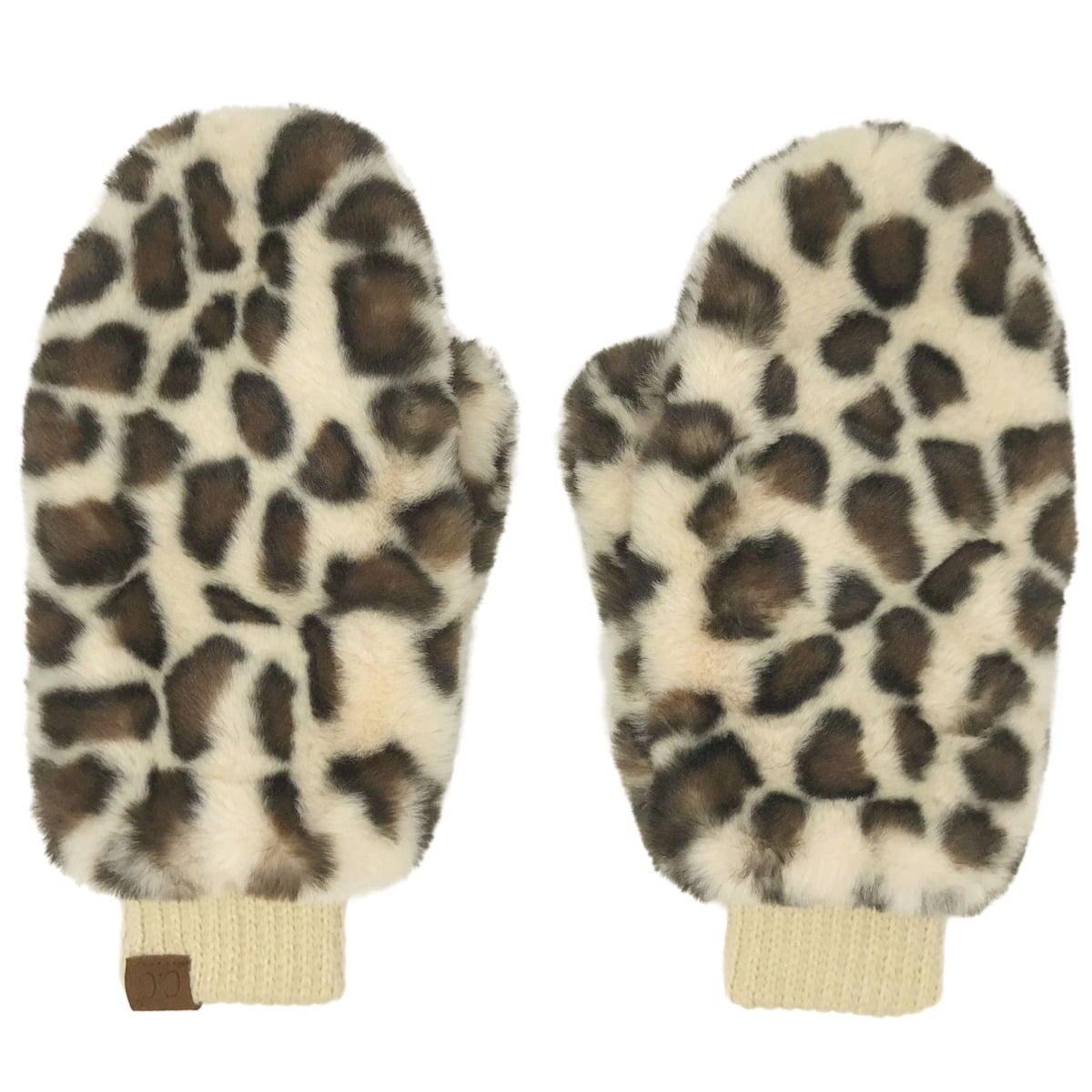 Cc Soft Faux Fur Fuzzy Lined Flip Up Down Top Fingerless Mitten Gloves Leopard Beige Walmart Com